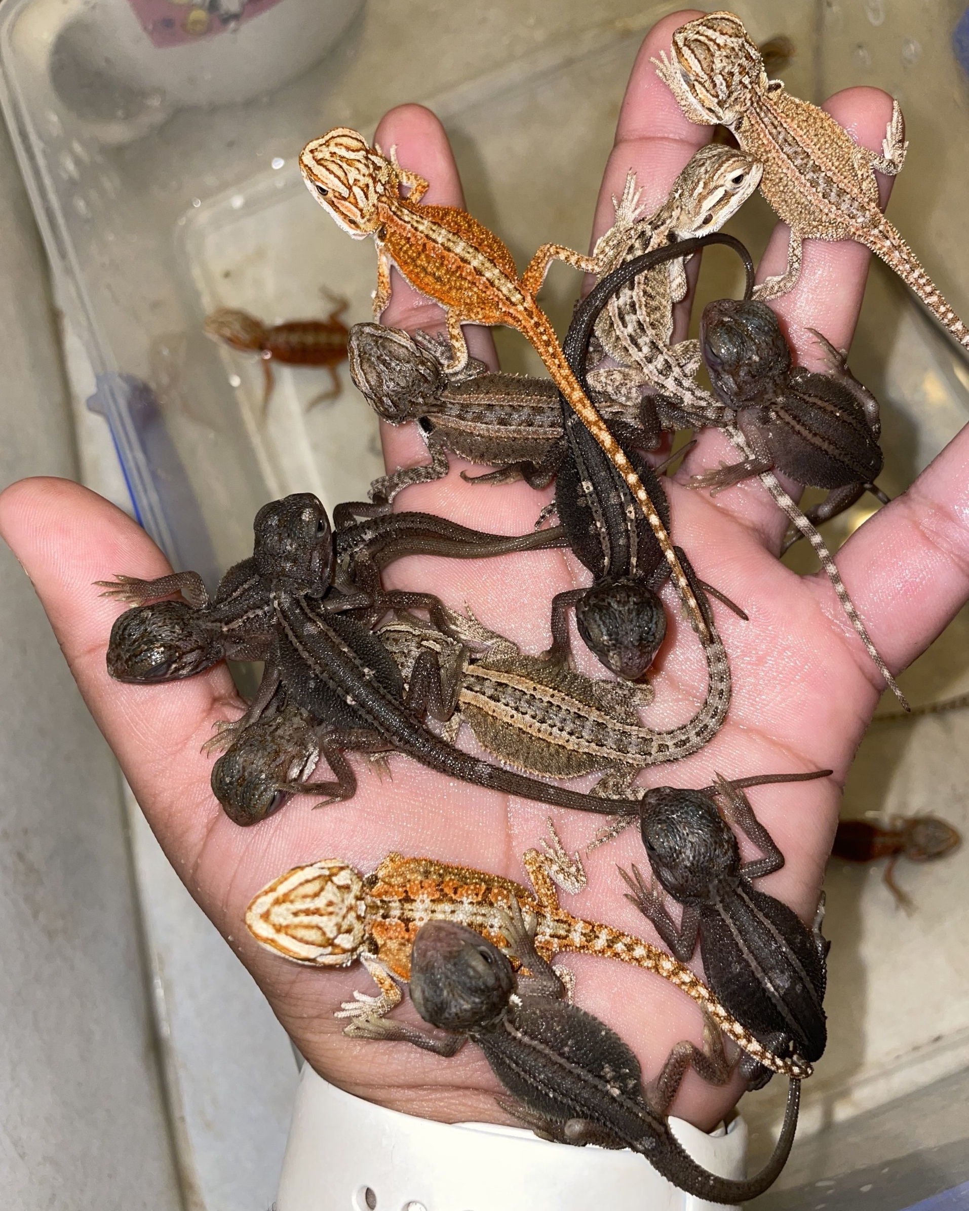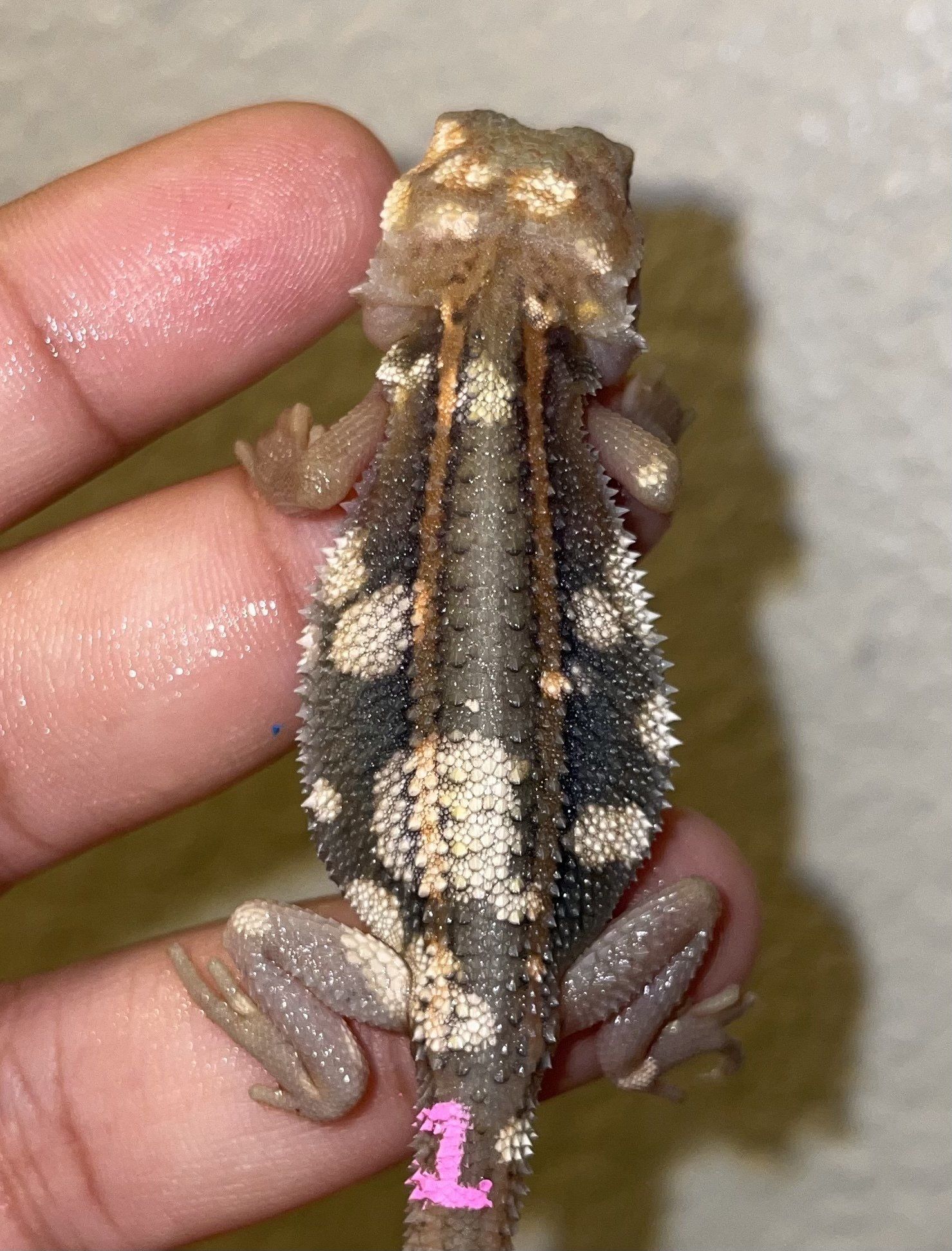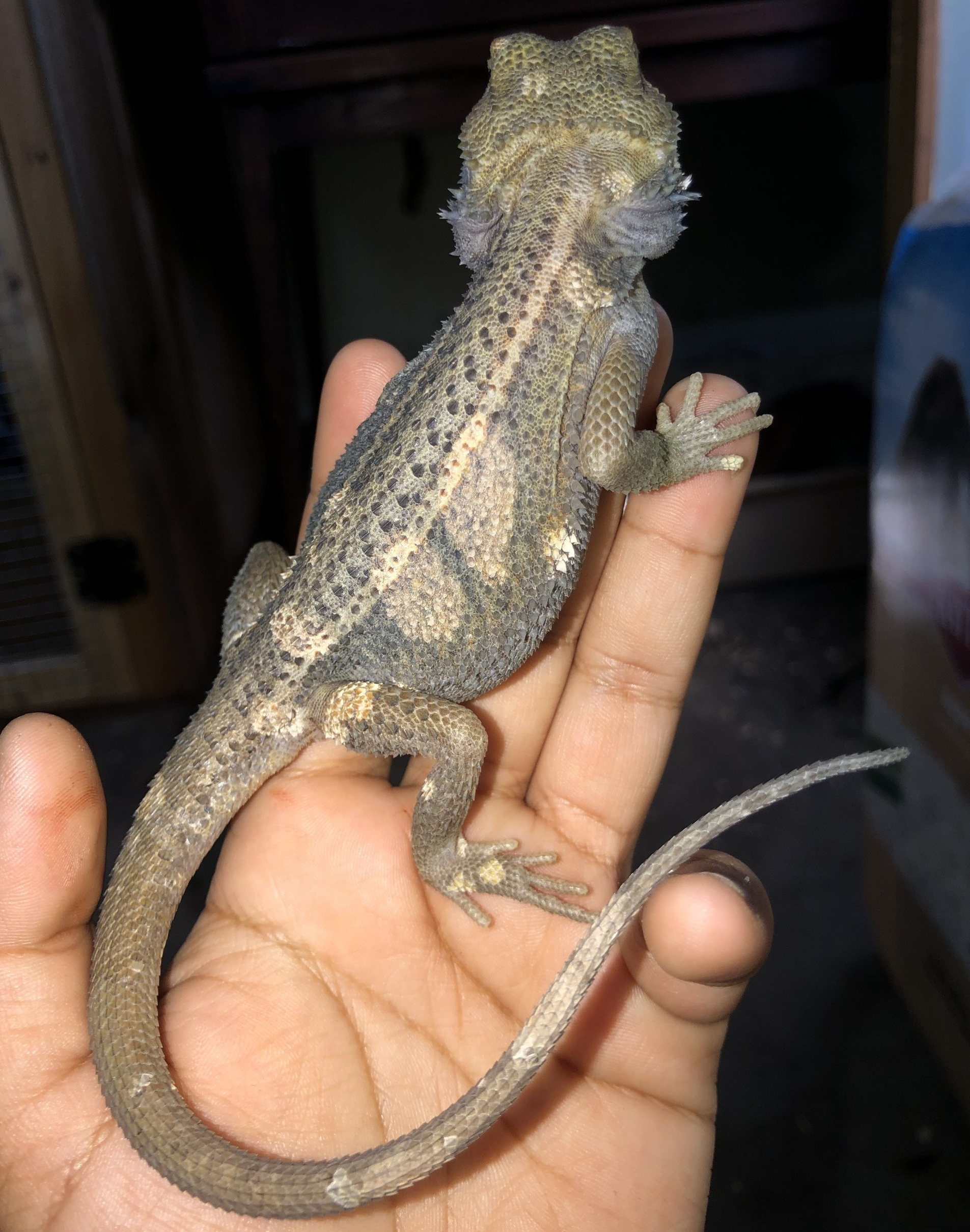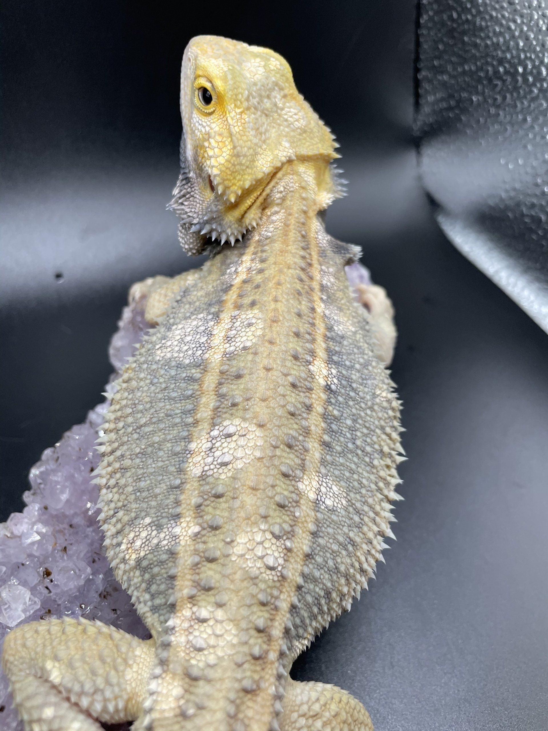 Since our original pairing that created the KC Paradigm was from two standard colored (Gray/Sandy Yellow) Dragons, our F1 Generation was relatively low colored & low expression (the majority of the spots were isolated to their belly & beards).