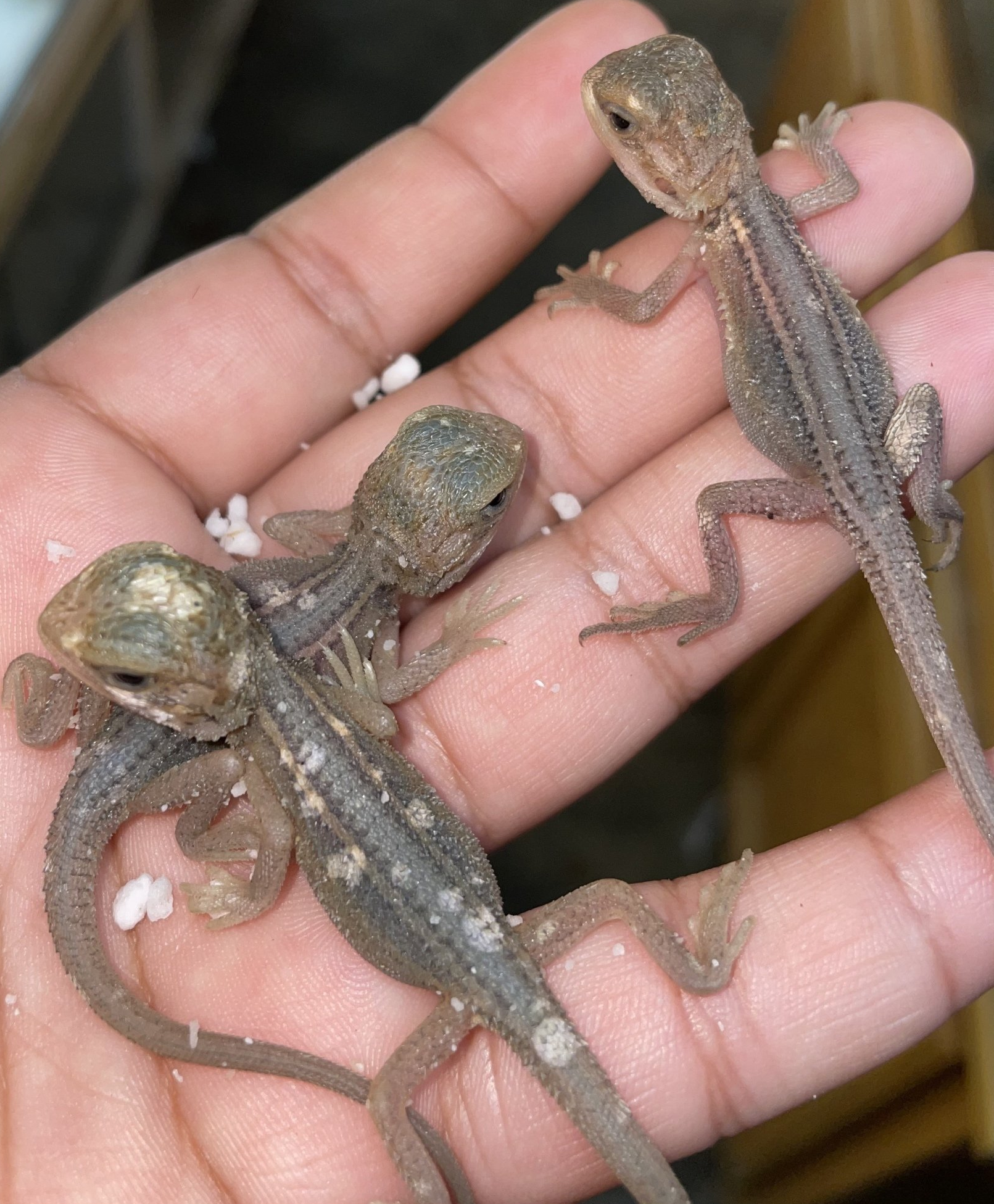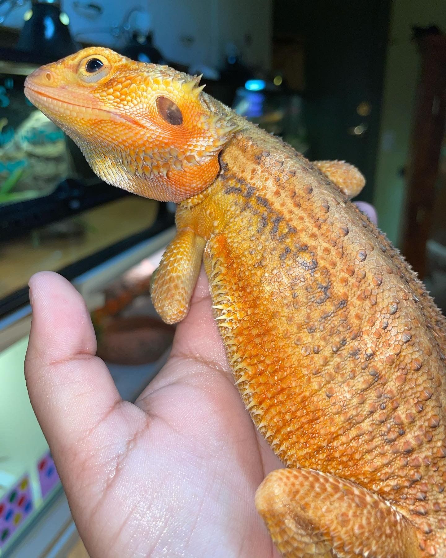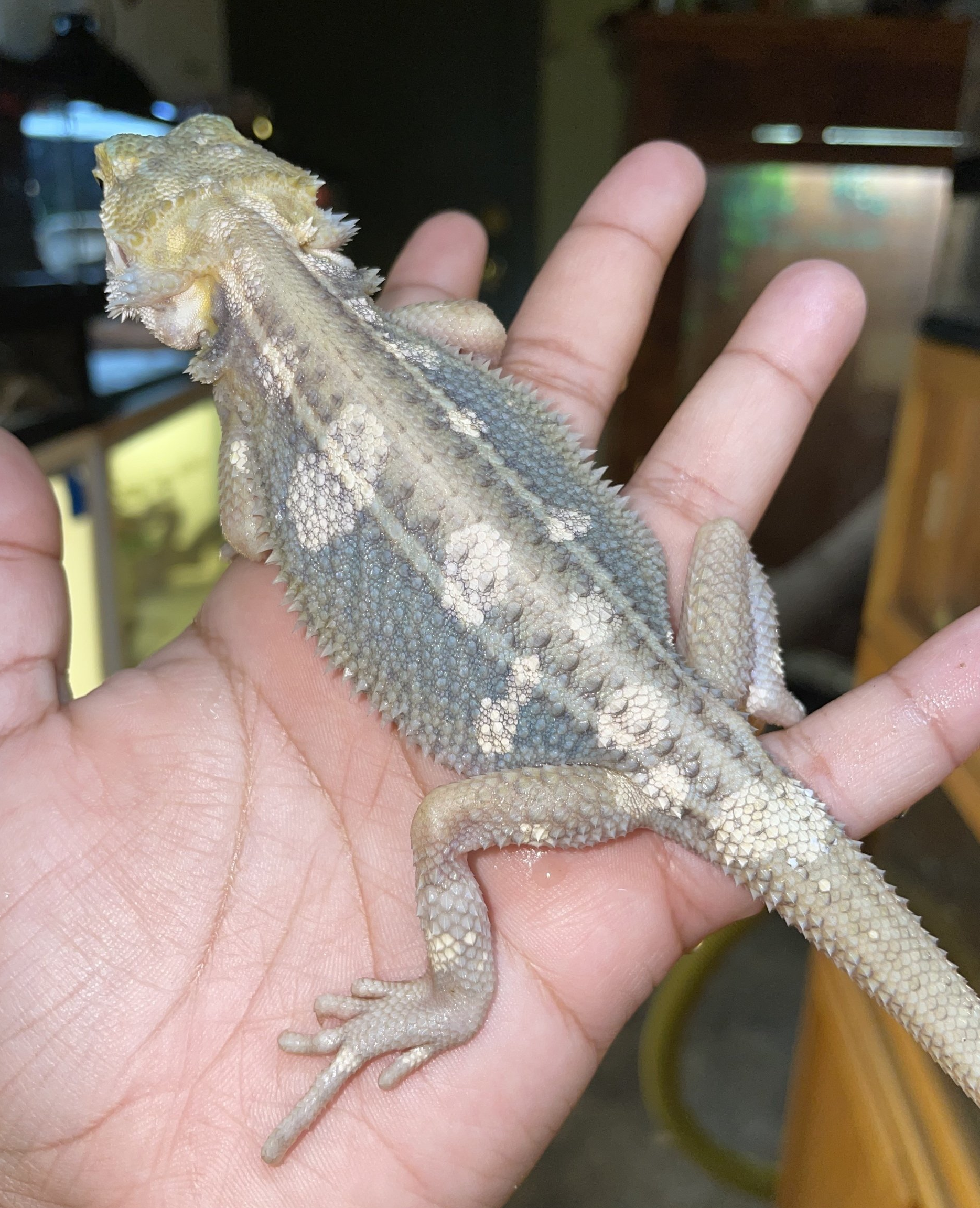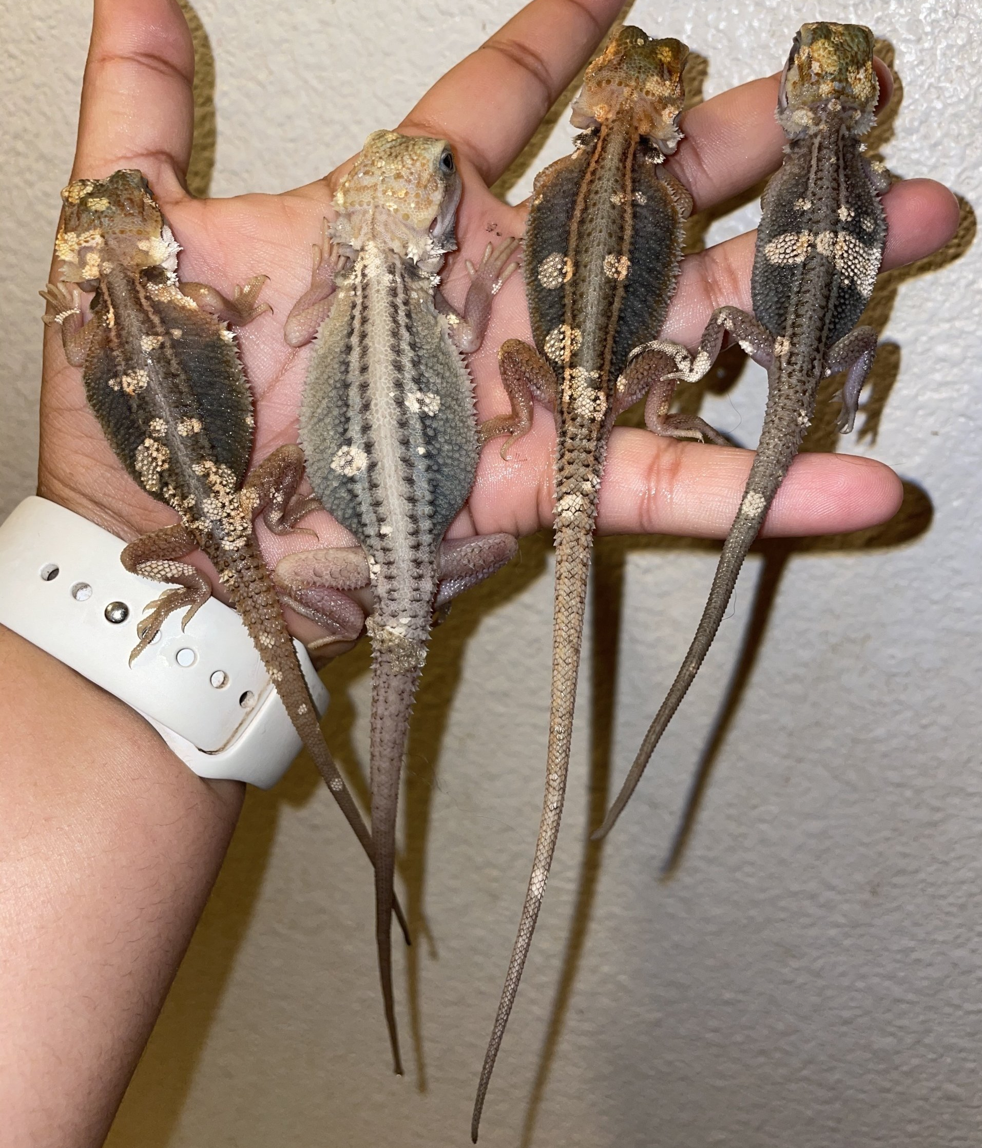 Since our original pairing that created the KC Paradigm was from two standard colored (Gray/Sandy Yellow) Dragons, our F1 Generation was relatively low colored & low expression (the majority of the spots were isolated to their belly & beards).